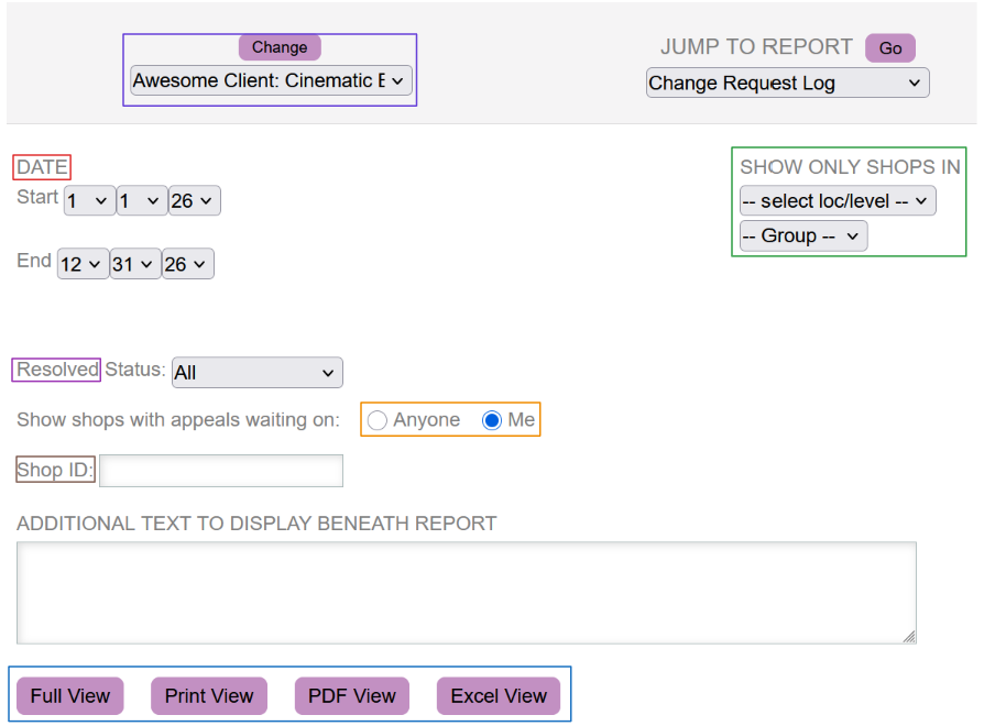 Change Request Log report allows you to view the change requests that have been generated for specific shops.